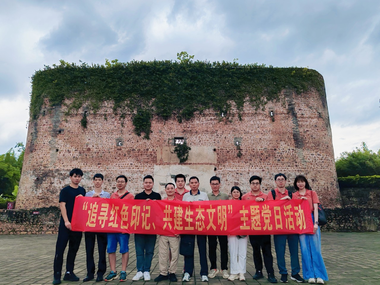 参加活动的党员同志们一同参观了广东省委机关旧址——红围,通过观看宣传栏里留下的珍贵历史照片和文字记载的历史变迁,了解这座近200年历史的围楼,历经岁月的沧桑与战火的洗礼至今仍然屹立不倒,感受在那血雨腥风的岁月里,中共广东省委从这里发出的红色电波,保持着与党中央的密切联系,指挥南方地区的抗日战争工作。随后,大家在红围前,面对党旗庄严地举起右拳重温了入党誓词,缅怀老一辈革命先烈的峥嵘岁月,感悟先辈不怕牺牲的英雄事迹,激发党员奋斗精神和干事创业动力。